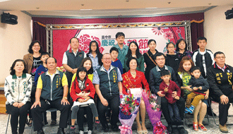 蘭陽南區婦人部王春英(左4)5月1日榮獲宜蘭縣冬山鄉鄉長謝燦輝親自頒發「模範母親」表揚,她的子女、孫子女在頒獎典禮齊聚一堂、歡喜合影,獻上溫馨的祝福。