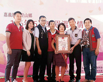 嘉義區阿里山支部婦人部黃美玉(右3),5月5日榮獲阿里山鄉「模範母親」表揚,杜力泉鄉長親自頒獎給12位模範母親,表揚她們常年為家庭付出的辛勞,為愛無私奉獻的母愛美德。
