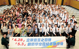 4月間,創價以區為單位在全台各地會館、講堂舉辦40多場「4.28立宗宣言之日暨5.3創價學會日紀念勤會」,全體幹部在題目聲中,誓願秉持日蓮大聖人、創價三代會長為民眾幸福奮鬥的精神,展開前所未有的擴大浪潮!