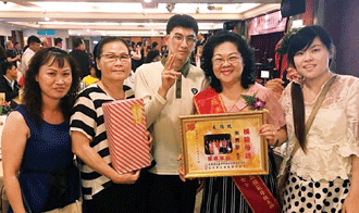 台中北區婦人部朱秀珍(右2)4月16日在「瑤池心 山海情」模範母親表揚大會中獲頒表揚狀,以感謝她長期關懷經濟弱勢家庭、鼓勵身心障礙孩童的無私奉獻行動。