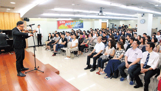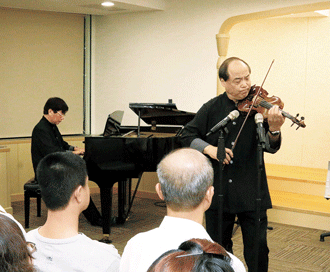 以精湛的台灣民謠合奏風靡全台的「魅力二人組」──台灣藝術大學卓甫見、麥韻篁兩位教授,5月7、13日分別應邀前往台南安南、嘉義友愛會館,以鋼琴及小提琴合奏,讓青年一睹台灣民謠的魅力風采,迴響熱烈!