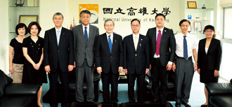 創大馬場校長(右5)前往高雄大學拜會,受到王學亮校長(右4)熱烈歡迎。