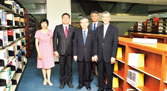 拜會活動之後,在圖書館館長蘇小鳳引領下,馬場校長一行人參觀了圖書館設施,對於中興大學早在10年前就為學生建設了非常完善的學習中心,馬場校長稱讚說:「真是不簡單!」