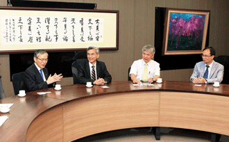「創大位於東京市郊,自然環境優美,是一個可以讓學生專心學習的地方。」創大馬場校長向王校長介紹創大的學習環境與來自世界55個國家、區域之留學生的學習狀況。馬場校長表示,創大是一所朝向國際化與多樣性發展的大學,並誠摯邀請王校長前往創大訪問。