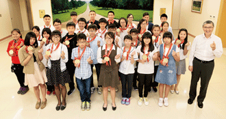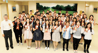 執行長林廷鋒頒贈「後繼」獎牌給在國際、全國及縣市比賽表現優異的國高中生。(上圖:高中生、下圖:國中生)