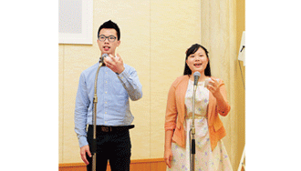 高中部趙翌帆(左)、劉怡琇(右)擔任司儀,明朗活潑的展現,帶動全場。