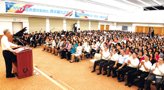 近年來,新住民子女的教育問題備受關注。婦人部張景慶是一位來自緬甸的華僑,她應邀發表引領子女、家人信心,超越經濟苦的體驗。當天,她與兒子吳兆麟輪流上台發表一家人的奮戰體驗,偉大母親堅毅卓絕的行動,讓許多與會人士流下感動淚水。