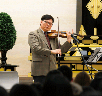 20日,享譽國際的小提琴家、台北藝術大學教授蘇顯達蒞臨板橋文化會館,一連演奏〈雨夜花〉、〈家後〉、〈匈牙利舞曲〉等多首膾炙人口的歌曲,讓全場聽得如癡如醉。演出過程中,蘇教授細數與創價的友誼,肯定創價對於推廣文化、藝術的貢獻,強調:「藝術能提升每個人的心靈,每個人都能有各自的體悟。」他的精湛演出及講解,頓時拉近了與會者與古典音樂的距離。