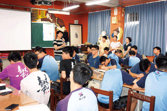 5月22日創價前往台中一中舉行「張蒼松攝影展」行動美術館,朱忠勇老師(中間站立者)對創價推動行動美術館的努力給予高度肯定。