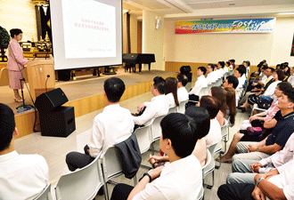 台北西區婦人部陳縈俐在板橋會館場次發表體驗,曾經營台灣最大清潔品牌公司的她,談及過往種種困難,感謝地說:「從開始折伏、為他人幸福祈求之後,我從來沒有煩惱過自己的公司,結果公司的困難每每都能化險為夷。」讓她深深感受到佛法「為人點火、明在我前」的道理。