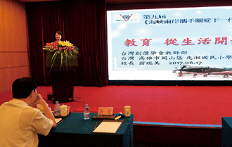 此行,教師部的翁瑞美校長(高雄市兆湘國小)於17日上午舉行的「兩岸專家演講」,以「教育 從生活開始」為主題,介紹她秉持創價教育理念,在小學推動校務、培育學生所獲致的豐碩成果。