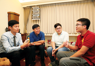 18日, 岡山區岡竹本部舉辦的「涌士日」,楊啟宏分享他透過擔任創價使命、邁向利他人生,並在職場上創造勝利實證的體驗。接著,大家在交流中針對「最近遇到的困難與煩惱」、「參加創價活動的心得」等議題,分享各自的心得洋溢相互鼓勵的溫暖氛圍。蘇有信說:「透過『青年友好嘉年華』活動,讓我知道信仰並不是僅止於心靈層面,而是要讓我們擁有面對困難的勇氣,雖然從事輪班性質的工作,但我會把握每次可以參加活動的機會。」