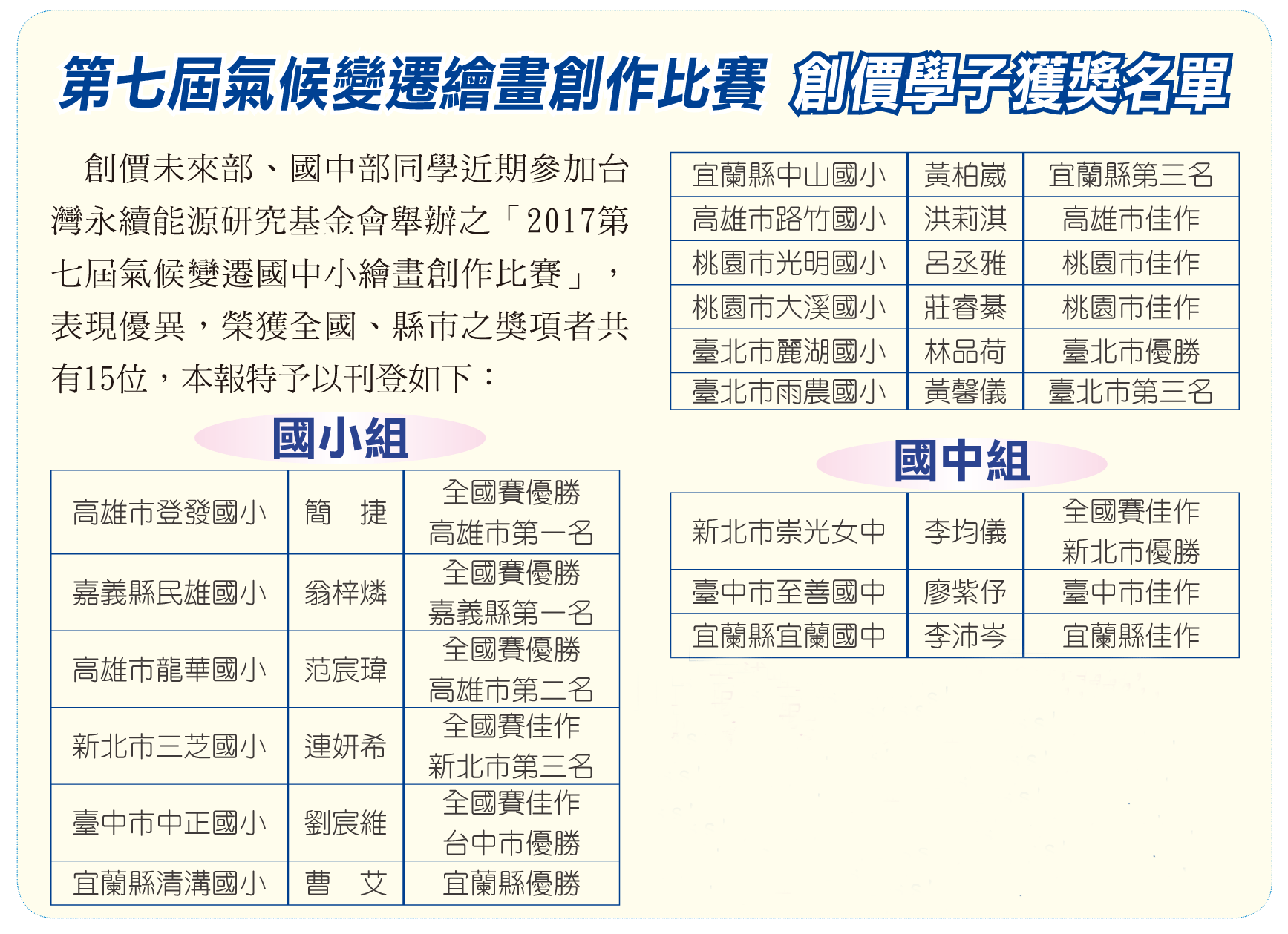 第七屆氣候變遷繪畫創作比賽 創價學子獲獎名單