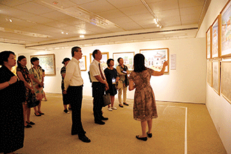 宋慶齡基金會訪問團參觀至善藝文中心展出的「郭雪湖回顧展」