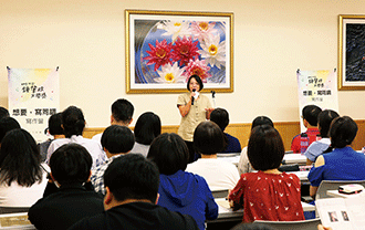 桃園市文化局局長莊秀美(中)致詞時感謝創價提供舒適的場地。