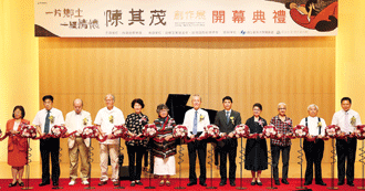 「一片鄉土 一縷情懷 陳其茂創作展」,7月2日下午在至善藝文中心盛大舉行開幕典禮。林釗理事長(右圖左7)、創作者的遺孀丁貞婉教授(右圖左6)、國立台灣大學圖書館館長陳光華、知名藝術家廖修平、梁秀中、梁丹貝、鐘有輝、顧重光等都參與盛會。