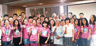 賈蕙萱教授(前排右5)與創價青年懇談時談到,池田先生一生最後的事業是教育。有好的教育才能培養出有素養及知識的人才,才能對社會做出貢獻。(7.2)