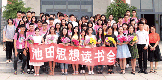 「北大暑期學校訪問團」6月29日前往東北與大連工業大學學生舉行「和平之橋─兩岸青年讀書交流研討會」,在該校池田大作思想研究所所長劉愛君(下圖第二排左6)帶領下,包括池田大作思想研究所、外國語學院、管理學院、國際教育學院等共有20多名師生出席交流活動。