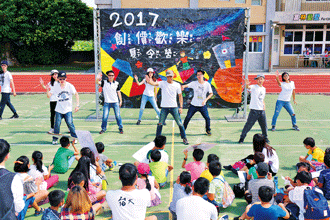 台大大學會以精心編排的舞蹈,熱烈歡迎富林國小小朋友。
