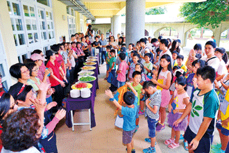 桃園西區壯婦部組成的「愛心後援會」成員頂著大熱天更進行環境美化、使校園煥然一新、精心準備餐點,吳校長說:「小朋友真的很幸福」,並勉勵小朋友:「感恩的孩子最有福氣,長大後,不要忘記去幫助需要幫助的人。」同時,為了感謝池田SGI會長帶領創價為學童舉辦充滿知性、洋溢青春活力的「創價歡樂夏令營」,9日結業式時,吳校長特地頒贈「感謝狀」給池田先生。