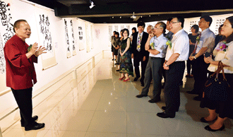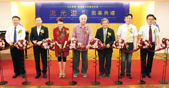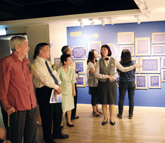 貴賓在導覽員引導下欣賞「流光溢彩」創價藝文典藏展。 (7.8) |