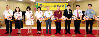 左起:洪玉柱副理事長、台中市大雅國中校長楊峙芃、國立中興大學圖書館館長蘇小鳳、台中市副市長林依瑩、創作者李轂摩老師、蔡友教授、東海大學美術系教授詹前裕、台中市嶺東高中校長陳泓全、台中巿上楓國小校長郭國澄。 (7.1) |