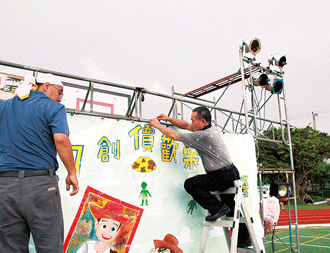 8日晚間,下了一場午後雷陣雨,為了使戶外晚會的場地有最好的狀態,讓學生們能盡情展現,壯年部不畏風雨、迅速協助整理舞台、燈光,壯婦部全力支持青年的心,讓人感動。