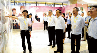 宋慶齡基金會主席王家瑞(右3)、林廷鋒執行長等人參觀「宋慶齡基金會20年交流成果展」。