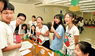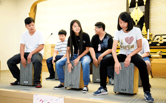 劃精彩的內容,除了有趣味「數學營」以數學謎語、解題遊戲及七巧板訓練大家的邏輯思考、幾何概念之外,「音樂營」則由鄭克偉老師帶領國中生們打木箱鼓,以基本的演奏、節拍帶入流行歌曲,讓大家隨著節奏拍打,帥氣的演奏獲得熱烈掌聲。