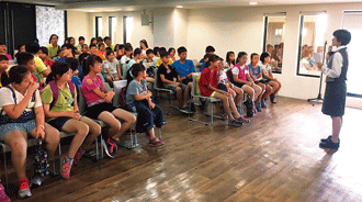 台南市仁愛國小近70位師生利用暑期英文營時間,蒞臨安南藝文中心觀展。(7.18)