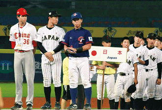 廖健富( 左3 ) 獲選為棒球國手代表國家參加「亞洲青棒錦標賽」,不僅全隊榮獲亞軍, 他更獲頒「最佳捕手」獎。