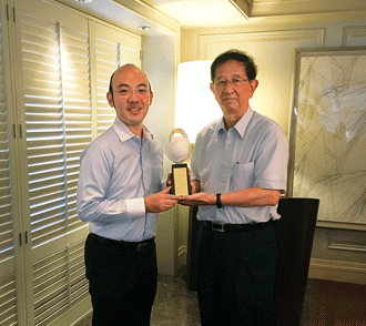 國立清華大學電機系副教授、青年部長林澤,榮獲財團法人傑出人才發展基金會「年輕學者創新獎」,8月28日在台北世貿中心舉行頒獎典禮,該基金會董事長李遠哲(右)親自頒獎。