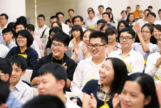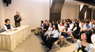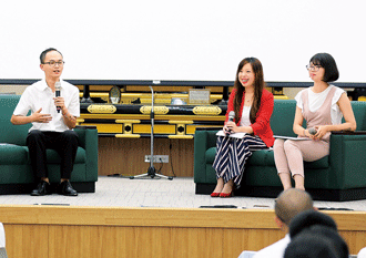 「遇見未來座談會」邀請到婦產科醫師黃千竹(圖1右2)、推動翻轉教育的林哲宇(圖2左1)、歐洲知名精品店銷售天王林靖翔(圖1左2)及IBM諮詢顧問夏嘉翎(圖2左1)等4位創價青年,分享他們追求夢想的感人過程,獲得班長們熱烈迴響。 |