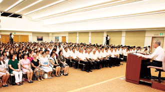 今年8月24日是池田先生入信70週年紀念日。林理事長指出,池田先生以作為戶田先生弟子的自覺,70年來秉持佛法人本主義精神,積極推進文化、教育、和平運動,為世界和平奮戰不懈。林理事長說:「沒有比能成為池田先生弟子更幸福的事了」,並以戶田先生與池田先生間的誓言「妙法廣布之旅雖遠,何不共勉,共往征之。」呼籲全體幹部努力將佛法的和平幸福種子播撒到社會每個角落。