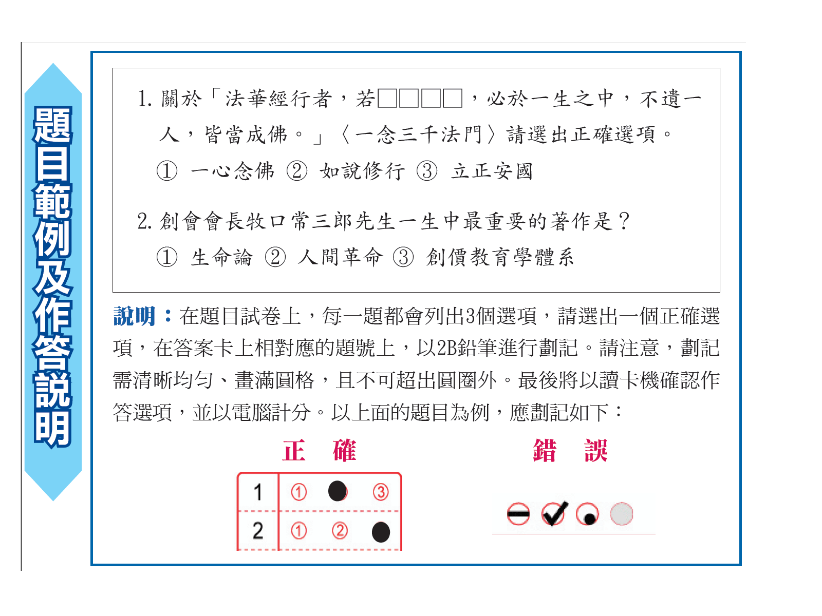 (考生注意事項,請至創價網頁「檔案下載區」下載)