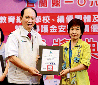 9月24日上午,宜蘭縣政府舉辦「家庭教育績優學校、績優團體及個人」、「社會教育貢獻獎」暨「導護金安獎、績優校園愛心志工」頒獎典禮。蘭陽南區婦人部許彩霞、黃寶瑩,長期投入校園服務備受肯定,從2700位志工中脫穎而出,雙雙獲獎。