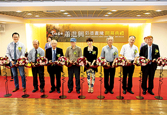 「實極虛出 蕭進興彩墨畫境」10月14日在台南安南藝文中心開幕,創作者蕭進興教授(上圖左4)親自主持,南台科技大學董事張信雄(左3)、台南市文化局副局長周雅菁(右4)蒞臨祝賀。
