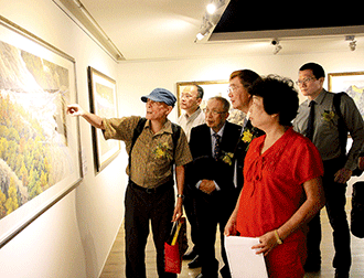 南台科技大學張信雄董事說:「藉由蕭教授描繪的台灣山水,將美好的景致帶給我們,實在很有福氣!」他並推崇創價推廣教育、文化、和平的行動,對於在校園舉辦「行動美術館」的作法,表示肯定。新山國小校長夏如春(左1)談到:「創價的行動美術館除了為台灣保留精采豐富的文化之外,對於關懷社會也做出許多貢獻,無私付出的行動,令人感動!」