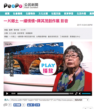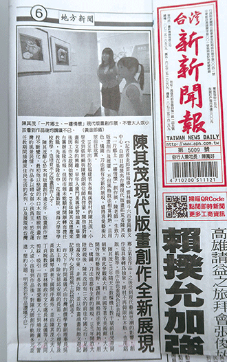 《臺灣時報》除了報導雲林景陽藝文中心「陳其茂創作展」開幕情況之外,並介紹創價以「文化尋根.建構台灣美術百年史」為主軸,引領民眾認識台灣。