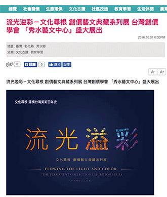 創價藝文第四季展覽開幕訊息,獲得《臺灣時報》、《台灣新新聞報》、《ETtoday》、《Peopo公民新聞》及高雄鳳鳴廣播電台大幅報導。