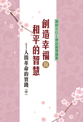 《創造幸福與和平的智慧—人間革命的實踐(中)》一書收錄池田S G I會長的指導,分為「因病起道心」、「櫻梅桃李」、「必顯年少、福重至也」與「超越難的信心」等四章, 談述面對疾病的超越之道、忠於自我的使命之道,並闡明豐裕的第三青春、「難即安樂」之理,期勉透過佛道修行,在自身生命中建立安穩的宮殿,永住三世永遠的「安住之地」。