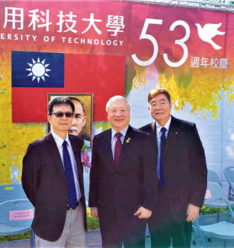 以培育專業技職人才聞名、2006年成立「池田大作研究室」的台南應用科技大學,10月28日舉行「53週年校慶活動」,副理事長吳大和代表創價前往祝賀,該校董事長翁廷碩(中)、校長林品章(左)給予熱忱接待,合影留念。