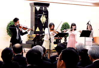 接著,青年團隊部8位代表一同獻上〈淡水暮色〉、〈Coffee Nerves〉、〈森崎海岸〉等曲,以悠揚的樂聲慶賀會館落成。