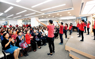 淡水區青年帶領全場高唱〈立下誓願的青年〉,高喊「與師同心、絕對勝利」,氣勢如虹、振奮人心。