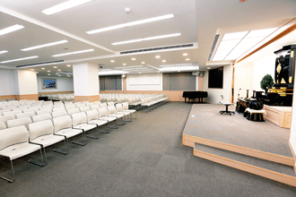 歷經4個月的規畫設計後,今年8月底開始動工,在建設與裝修團隊齊心努力下,終於順利落成啟用。館內面積300多坪,設置了可容納300人的文化會堂、藝文會堂、講堂及會議室,並特別規劃提供青年文化團隊使用的練習室、樂器儲藏室等,是一座培育青年人才,帶動廣布前進的嶄新寶城。