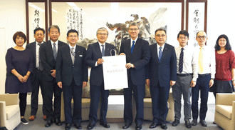興建「花蓮文化會館」過程中,在機電設備方面給予創價諸多協助的日商「關電工股份有限公司」副社長芹澤正宏(左5),11月30日上午蒞臨至善文化會館訪問,受到執行長林廷鋒熱情接待。