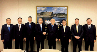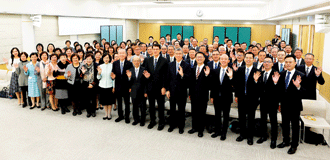 11月13日,林釗理事長與學會本部副會長、學會顧問律師團首席律師八尋賴雄(右4)等針對會則進行討論,並於會後合影。