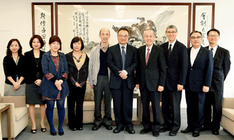 為此,國美館館長蕭宗煌(右圖左6)11月21日上午專程蒞臨至善文化會館訪問,林釗理事長親自給予熱誠接待。