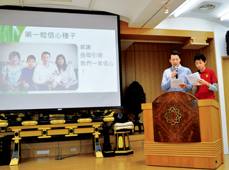 1日,仁和地區(三重區)總會中,壯年部陳峟仁分享他透過信心超越經濟苦、官司纏身、病業等挑戰的勝利體驗 。過程中,他在前輩及家人不斷鼓勵下,以題目為根本 ,懷抱強盛信心奮戰到底的精神,讓人無比感動。