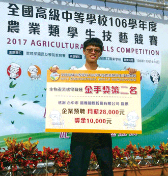 《創價之光》郭立智榮獲全國高中農業類 學生技藝競賽金手獎第二名
